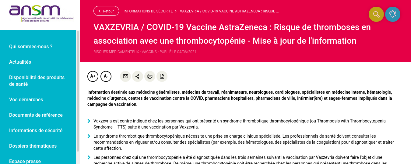 Explication de l'ANSM :